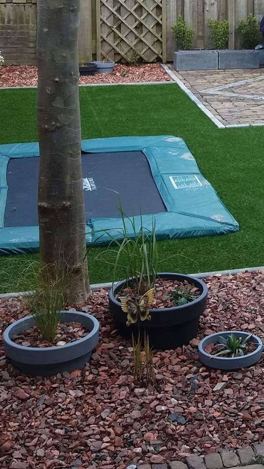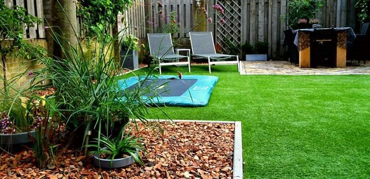 Een jong gezin bestaande uit vader, moeder en twee kinderen brengt al heel wat bedrijvigheid met zicht mee. Een onderhoudsvriendelijke tuin was hier zeer gewenst.